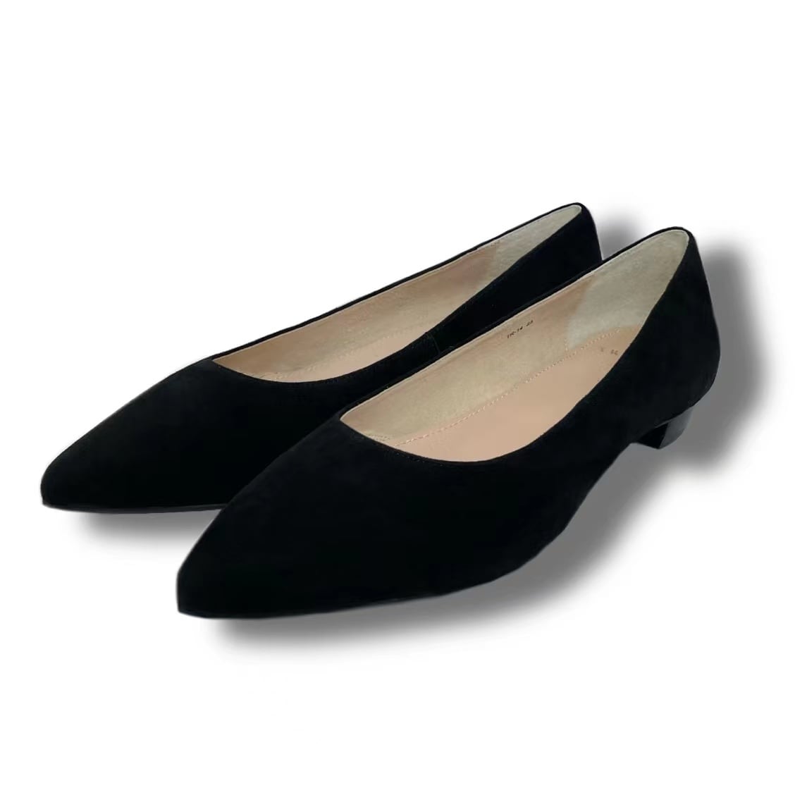 ★TRèS TRèS★撥水加工 本革 ボロネーゼ ローヒールパンプス TR-14-BLACK SUEDE