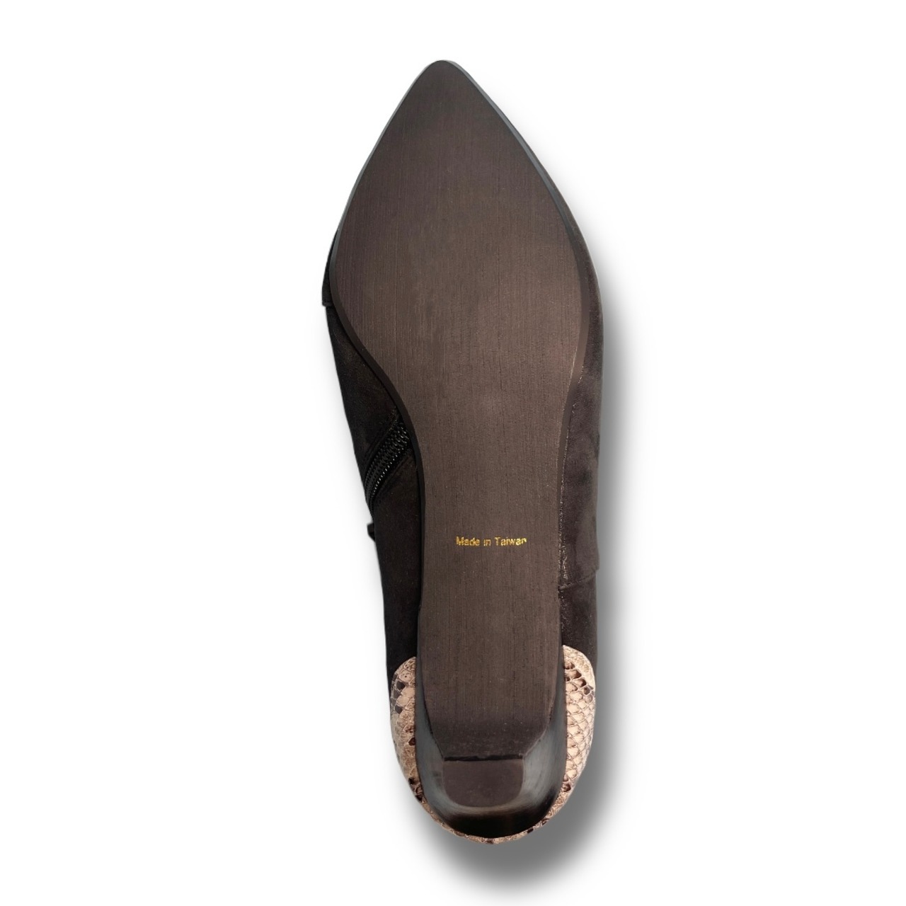 かかとにはさりげなくヘビ柄のワンポイント付き。